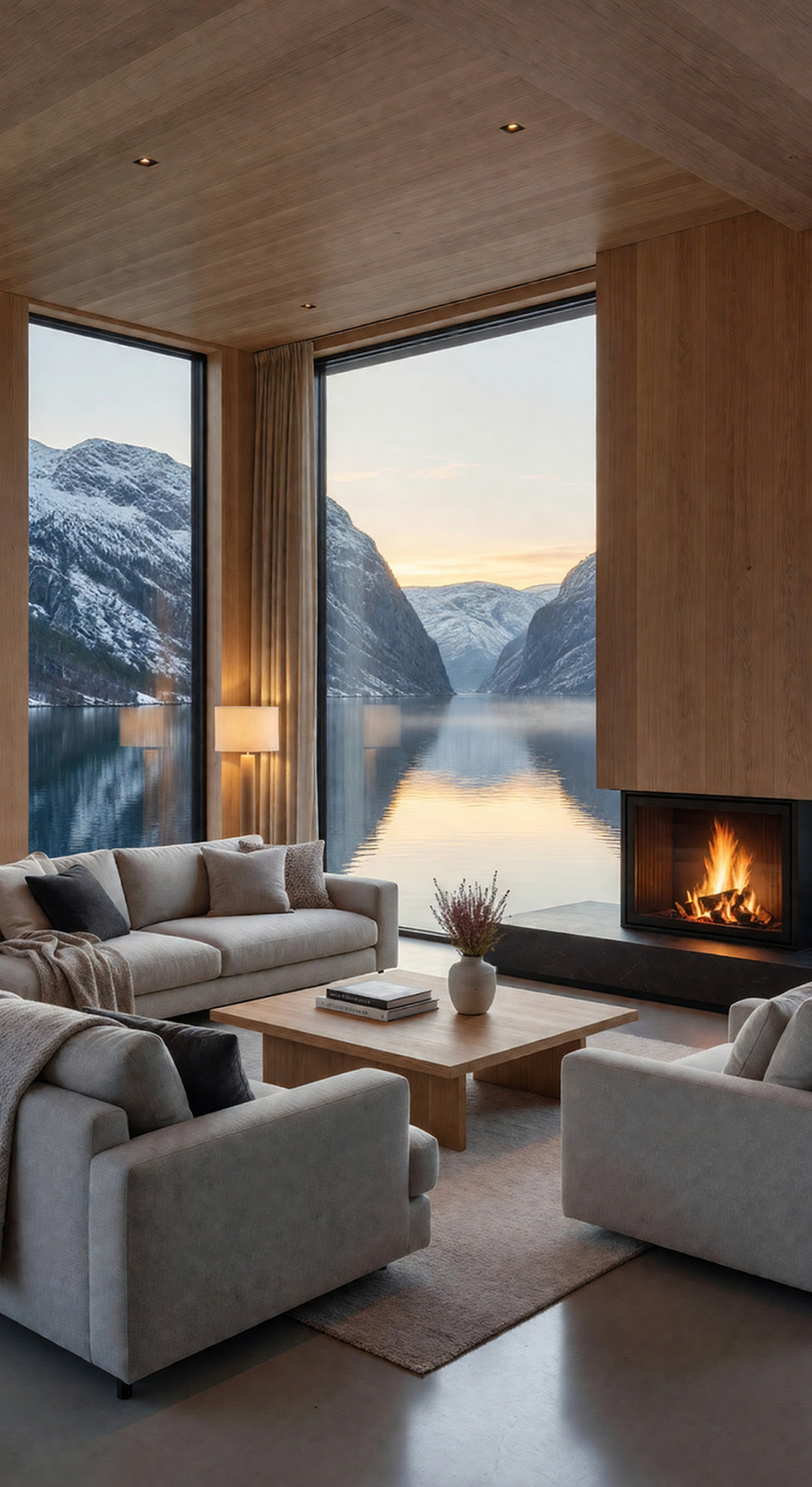 AI Photo Transformation: “Remove the lamp place front of fireplace”