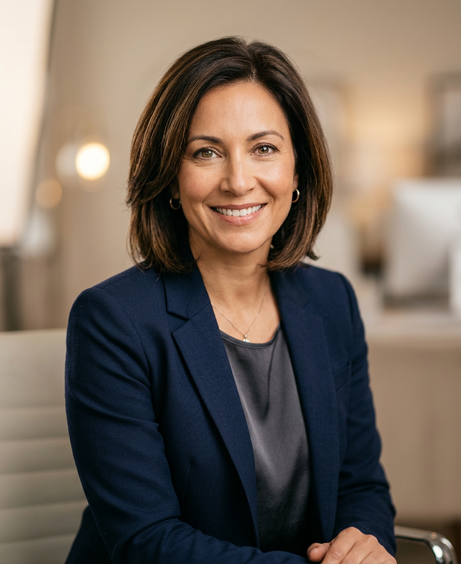 “Professional headshot of a confident woman with warm studio lighting, shallow depth of field, soft skin tones”